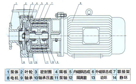 簡要描述:CQ型工程塑料磁力驅動泵(簡稱磁力泵),是應用現代磁學原理,將永磁聯軸器的工作原理用于離心泵的新型產品,磁力泵以靜密封取代動密封,使泵的過流部件處于完全密封狀態,徹底解決了其它泵的機械密封無法避免的跑、冒、滴之弊病。磁力泵選用耐腐蝕、高強度的工程塑料、鋼玉陶瓷、不銹鋼作為制造材料,因此它具有良好的抗腐蝕性能,并可以使被輸送介質免受污染。...